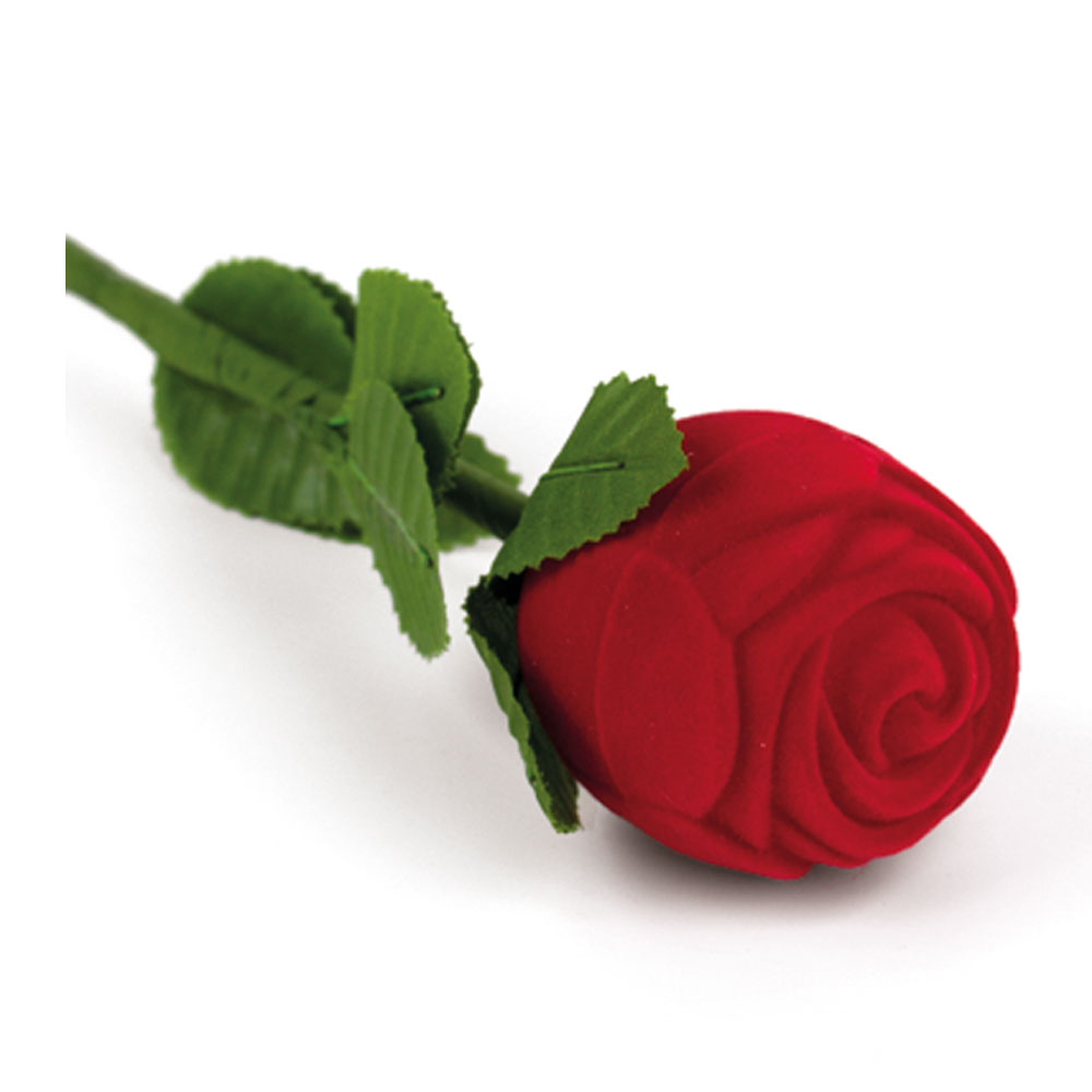 Estuche de fantasía Rosa con Tallo para Sortija/Pendientes con interior en espuma aterciopelada blanca.