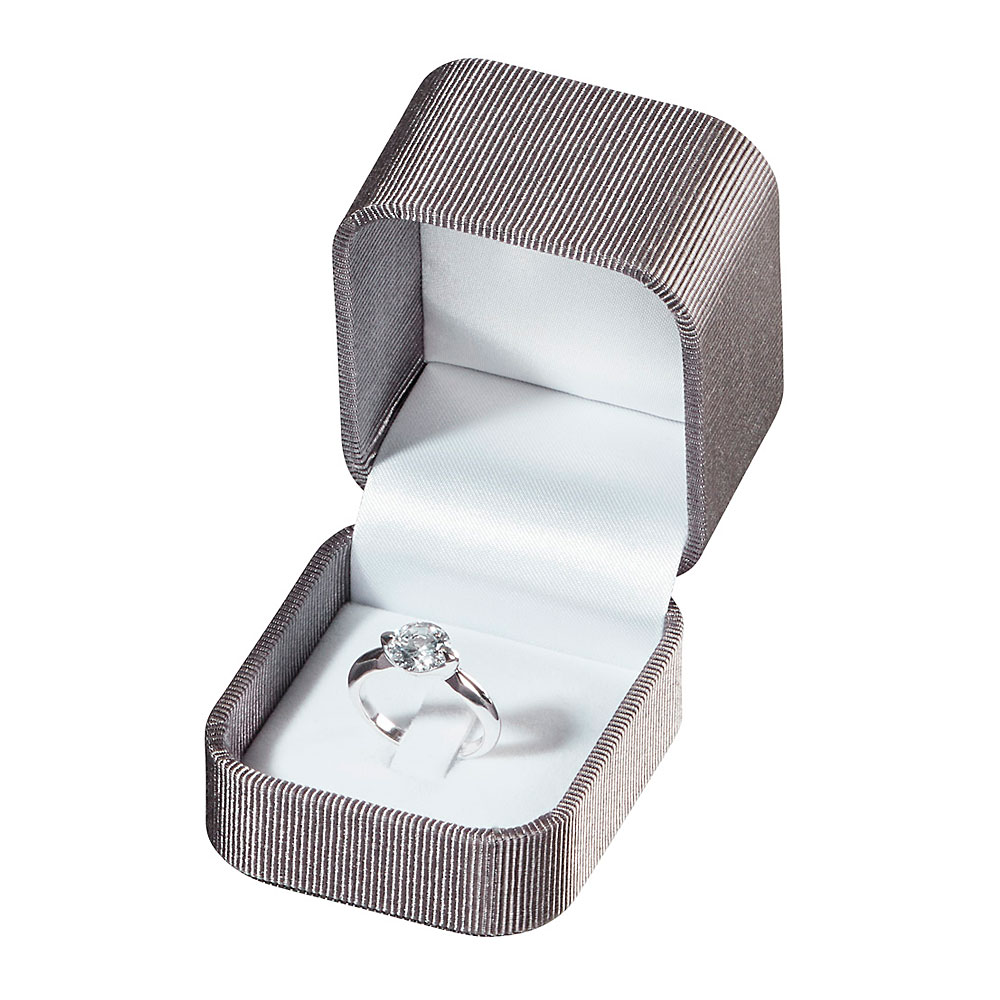 Estuche forrado en satén rayado para Sortija/Saja. Interior aterciopelado. Disponible en Negro, Burdeos y Gris.