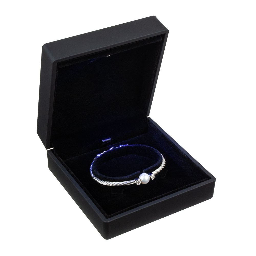 Estuche Luz Led para Pulsera Cerco forrado con exclusivo material tacto piel e interior aterciopelado negro. Disponible en Negro (interior negro).