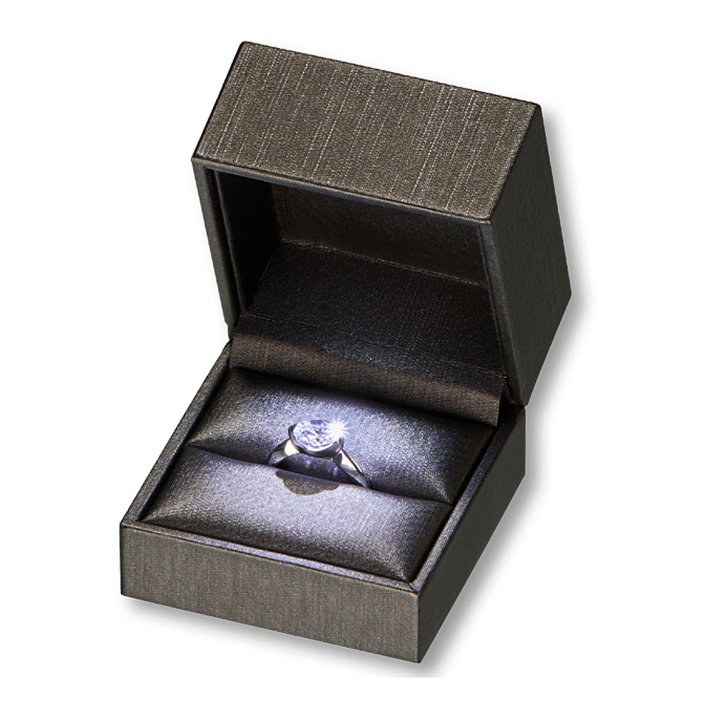 Estuche Luz Led de lujo para Sortija Saja forrado con exclusivo material color Grafito. Disponible en color Grafito (interior color grafito).
