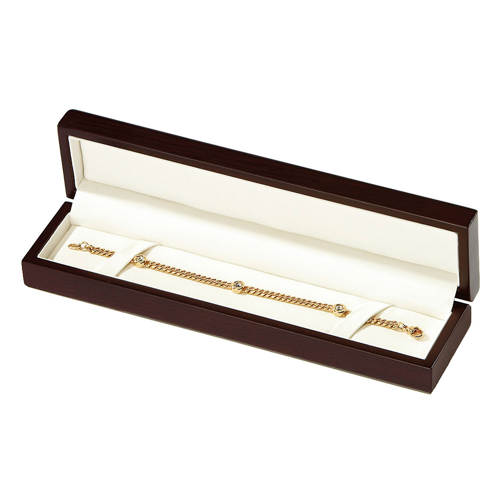 Estuche de madera de nogal para Pulsera Extendida con interior en símil piel blanco. Disponible en color Nogal.