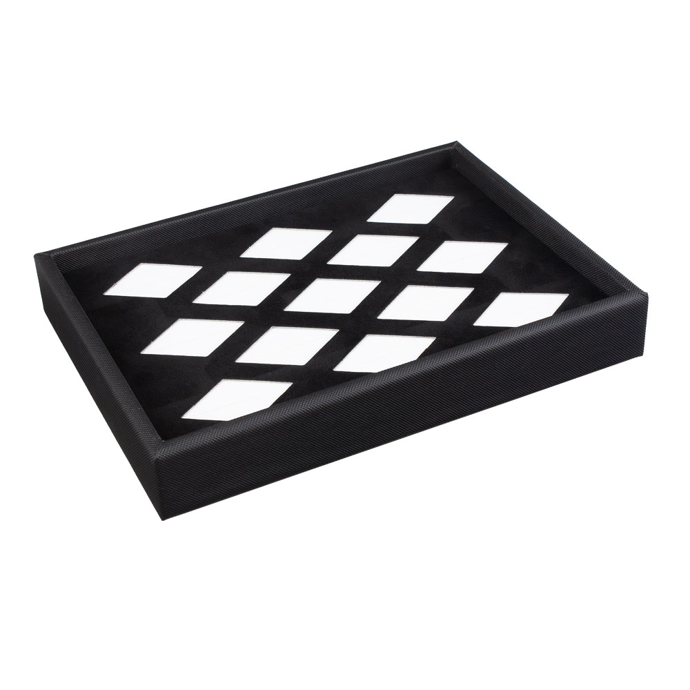 Batea 13 Sortijas Rombos. Disponible en Polite Negro (interior Negro) y Polite Plata (interior Gris).